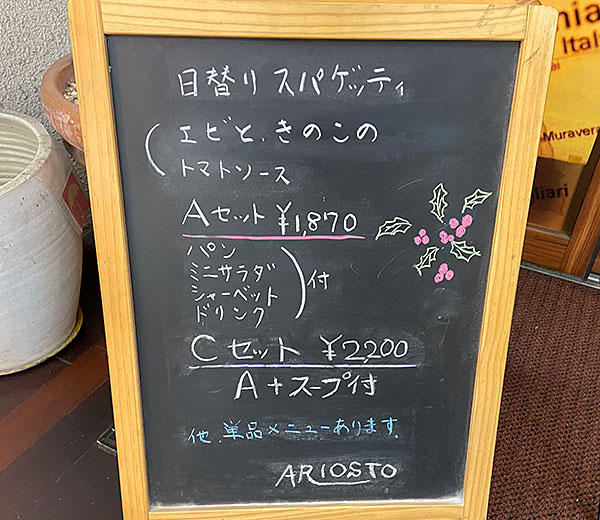 昨年の年末にパスタが大人気のお店アリオストさんで夕食を食べました。