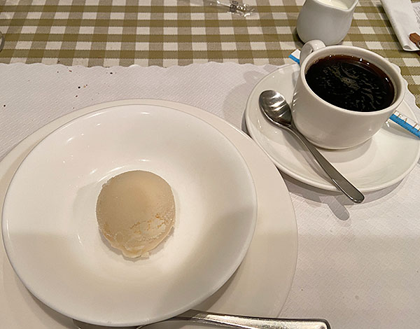 ホットコーヒーと桃のシャーベット